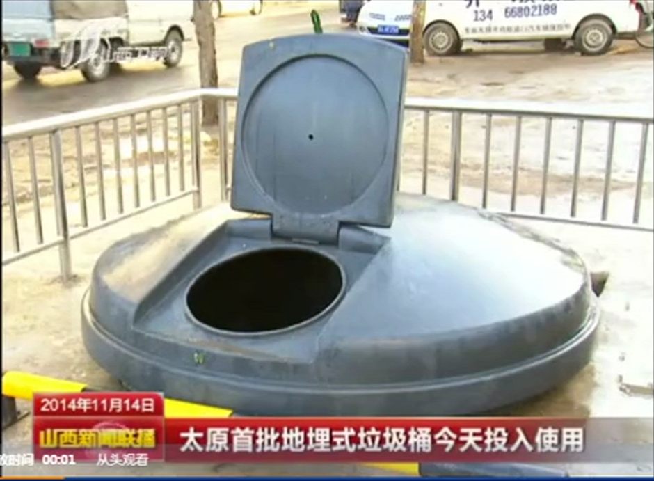山西衛視在當地采訪了地埋式垃圾桶的使用情況